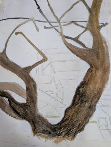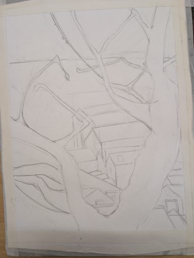 This sketch has been hanging around since October, whilst I considered the idea of painting it, but the time was right and the outcome was pleasing on wednesday