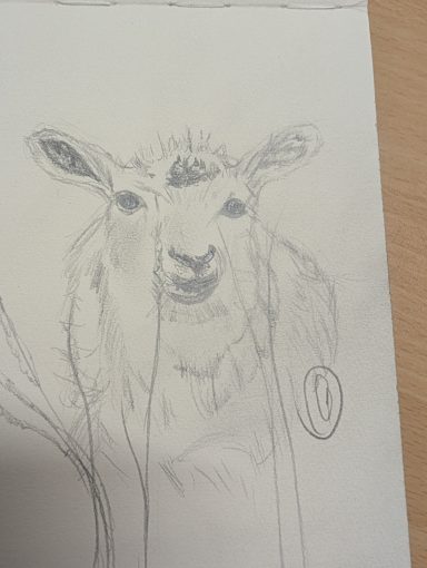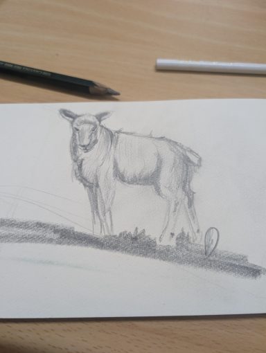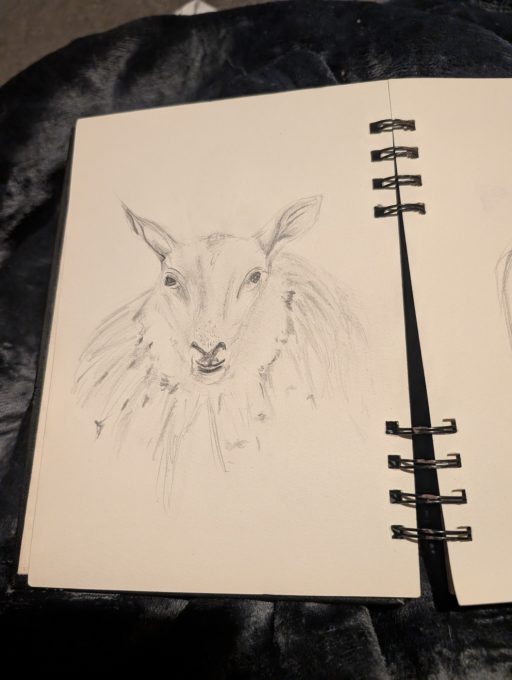 This poor sheep got the pleasure of being the first thing I sketched in my new varifocals .. better him than Dixie, but they seem to be working ok so far.