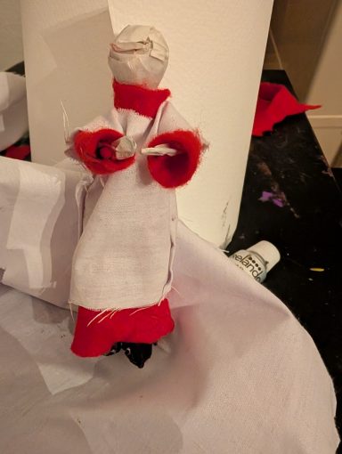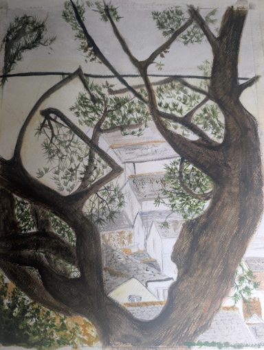 The draft is complete, very raw but complete, so this week has been a nice bit of breathing space. This allowed time to get on with my tiny choir boy, a contribution to the Watchet art Club tree in the St Decumans tree festival, that really was fun after several days of 8 til 8 typing and research.