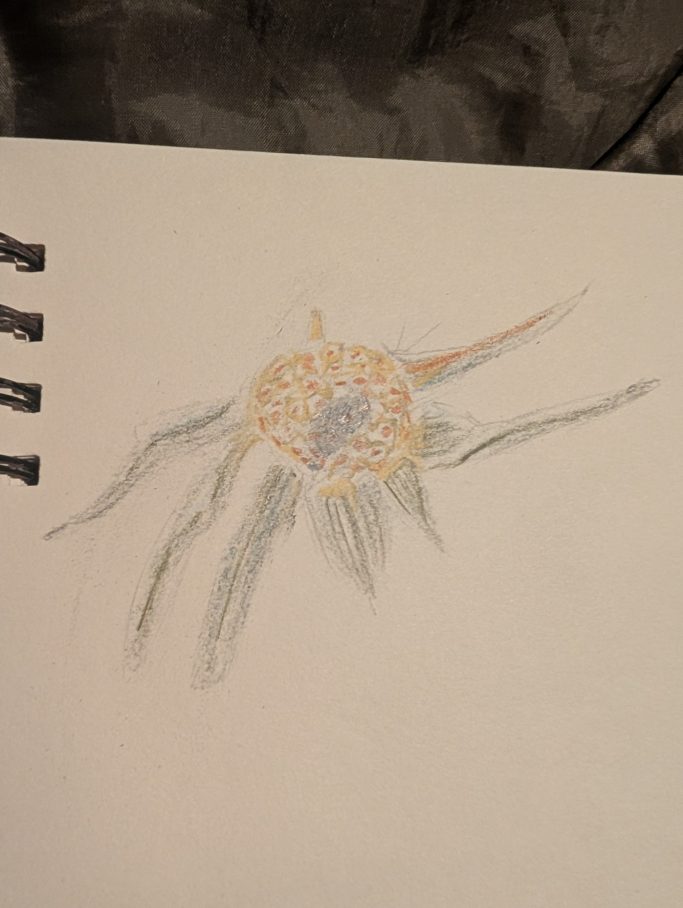This week has been busy, but not very productive. The online studio crit was interesting with the main focus on my pastel rose, some considerations on meaning that I hadn't thought of came to light so all very useful. Feedback on draft MA submission was both constructive and inspiring so it has been head down and work for a few days. The link below will take you to the most recently uploaded version of the video. https://falmouth.cloud.panopto.eu/Panopto/Pages/Viewer.aspx?id=e5b3027e-6574-4f7c-ba84-b324013e427e Not much in the way of artwork other than that but we had to do a creative writing piece which is below :