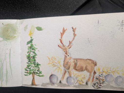The essay has certainly been at the forefront of my mind, but we set up the Christmas tree in the church on Thursday morning and I managed to actually put paint on a sketch made in October. Loving my new 00000 brush and the hansa yellow light from Daniel smith, what a combination. I have a commision to create some chinese dragon silhouettes, and all being well the reindeer tree decorations, or freestanding as they do both will be on the website next week.