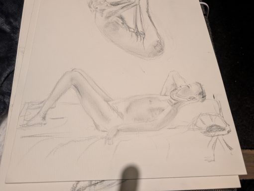 This week has been yet again busy, but managed to fit in life drawing on Sunday and might get a day of art tomorrow. The next MA submission is as ready as I can make it, well for today at least I may have changed my mind between now and submission date. Life drawing was great with lovely Dixie again, it is such a pleasure to spend a couple of hours in good company and sketch. Might be useful instead of saying i must sharpen my pencils I actually get round to doing it though.