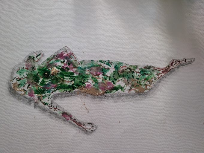 The next project is only in its infancy so far but the results of the test work-through have given me hope that it will come through. The aim is possibly a People drawing people exhibition later in the year but also as another element to my Final major project bringing plants and people together in an organic image. so far all my life drawing practice has been collated and images taken to create templates for the project. One was taken through the full process today and the depth of colour in the greens and magenta was pleasing as was the difference in tone of the gold leaf. Hopefully the next few days will see images develop to create the vision of my imagination.