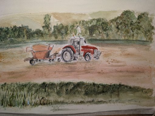 Had some fun experimenting with gum Arabic on the tractor and playing with my new extremely long natural sword brush