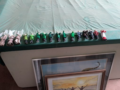 I got plenty of practice attaching the hanger on thursday as several peg people needed their heads drilled to hang from the tree, I wonder if my orchestra will make it home for Christmas? It would be nice to have them round our tree.
