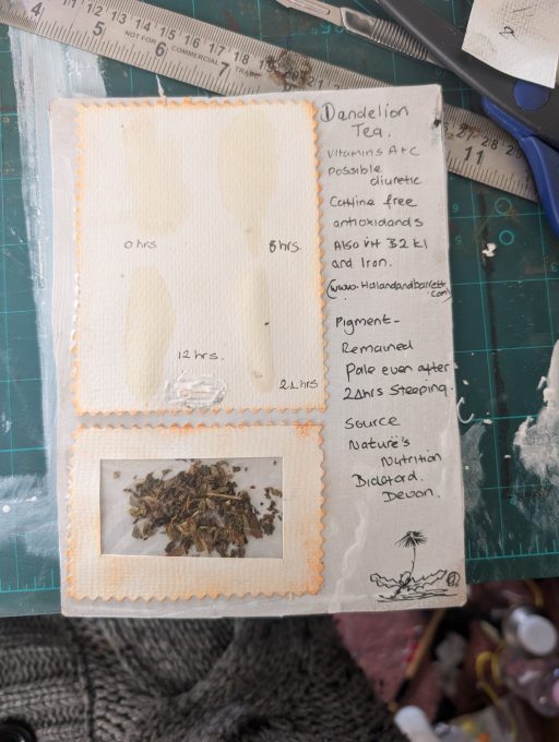 This week Dandelion tea was explored as a pigment, whilst waiting patiently for for my oragnic, locally grown Dandelion coffee to arrive. It turns out there was not a lot of pigment in the tera results below. But another Dandelion portrait was born a slightly looser style this time but all part of the fun of watercolor art.