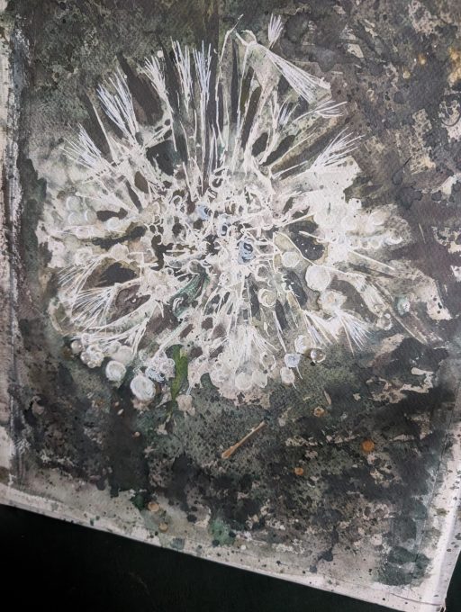 Tis the season for experimental art .. a dandelion painting started at art club, did not go quite to plan, so an idea and a rammage found some resin dots form previous projects, now a new batch are curing and the piece will become and exploration of combining watercolor and resin. If you head to the Dandelion portraits page, you will find an opportunity to have your dandelion art work displayed in a week long exhibition so click below