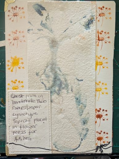 In the studio Gum Arabic and clay met and the results were pleasing all very experimental at this stage but fun. I also tackled some Cyanotype printing mixing my own solution and using handmade paper from the Two rivers company nearby. A fascinating process with UV light. So all in a good week with thanks to Clare Willcocks who let the Dandelions take over her art group and of course to the art group for submitting such beautiful images, I am blessed that my vision is starting to come together don't forget to follow the Taproot journal on Facebook and Instagram.