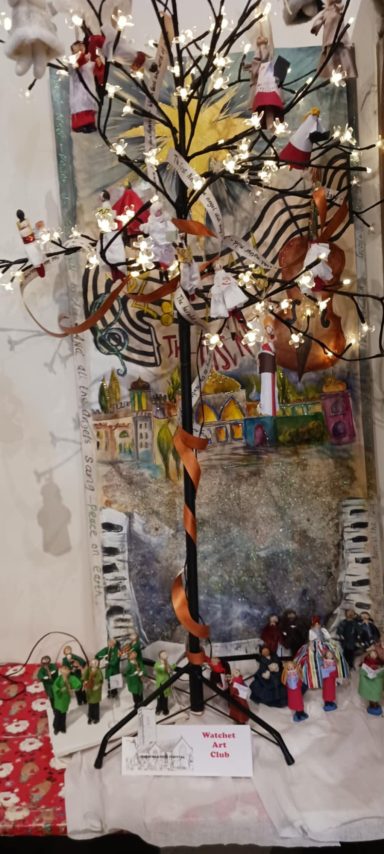 The Tree in the church, created by Watchet art Club, it certainly fitted the brief and stood out amongst teh green plastic companions all of which were decorated beautifully.