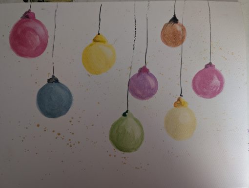 This week has been full of glitter and detail, a larger watercolour of a Dandelion took precedence, but the annual card strings went up and a little on the early side got filled with a range of cards for friends and family. Another project with silhouette stencils is taking shape and the joys of drilling tiny pilot holes for tiny eyelets is looming large .