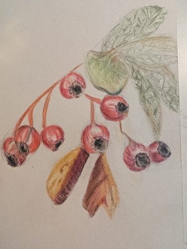 Phew, from 16 peg people for the Art group Christmas tree, to 3 art groups including life drawing, it has been a busy week. The hot glue gun was on fire on Monday and Tuesday as was the sewing machine, fun to be doing a more craft based activity for a few days and hopefully they will look ok on the tree. I also was pleased to find my watercolour of the fields made it into the country walking magazine earning a golden badger.