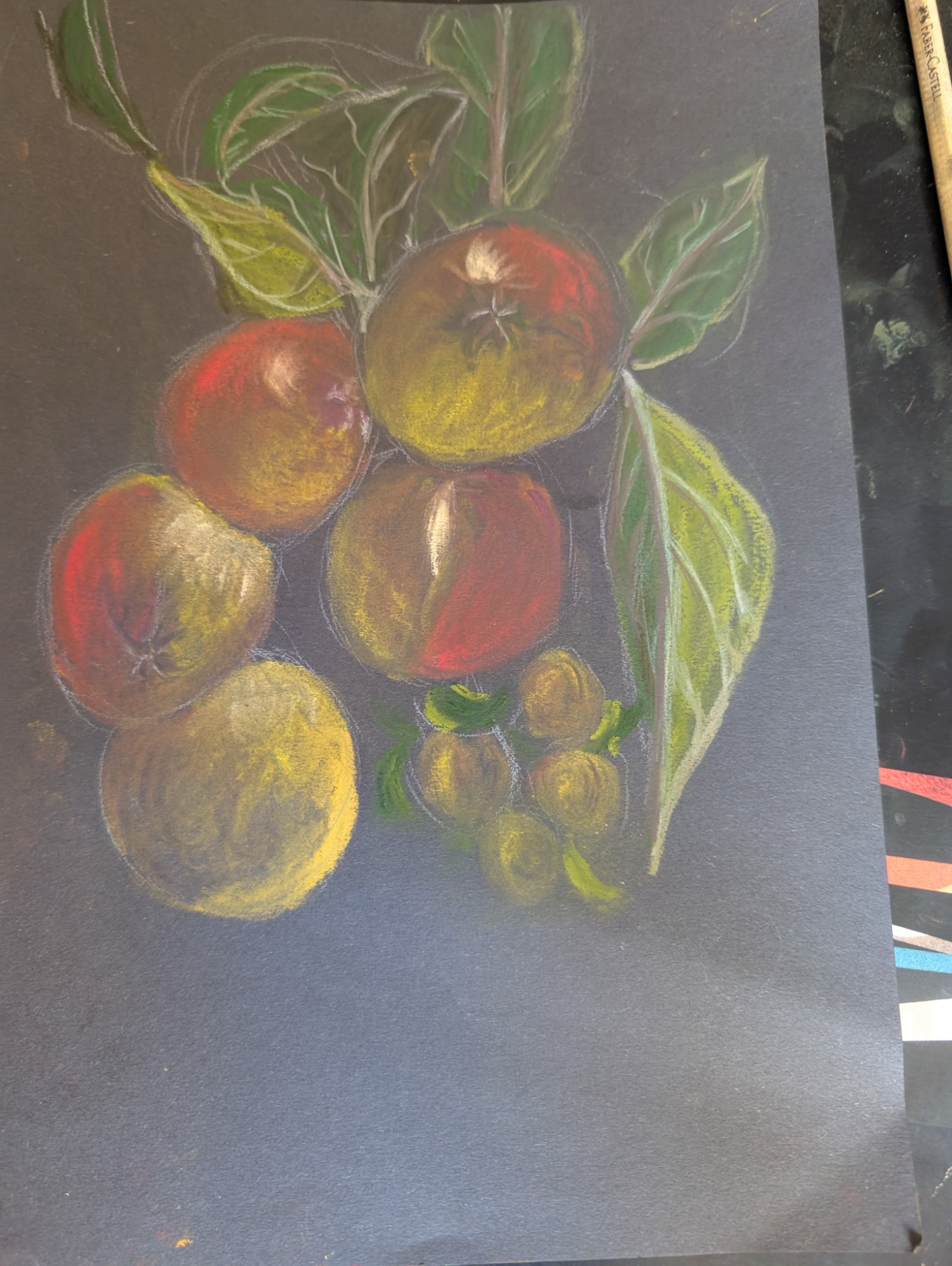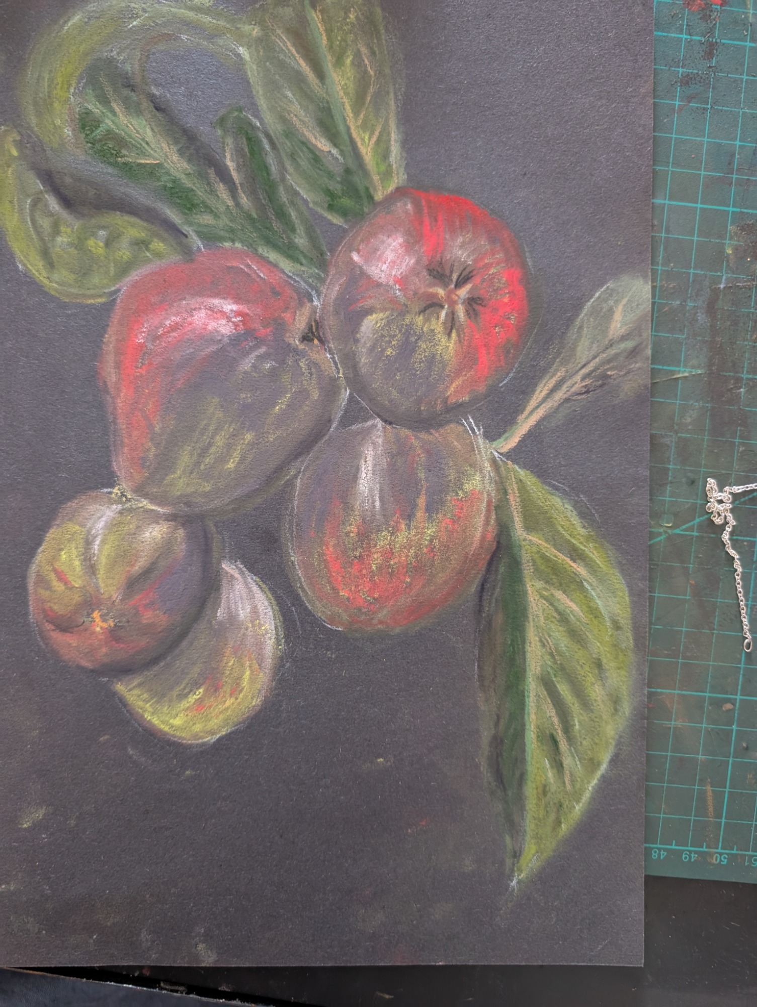 The framed plums are available whatsapp 079009891195 or contact from here for details Soft pastels on black paper