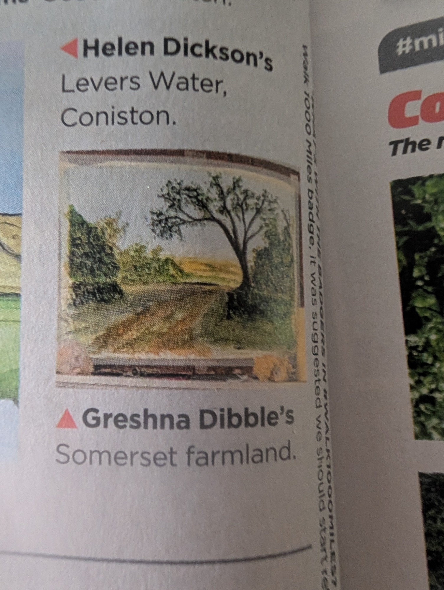 Phew, from 16 peg people for the Art group Christmas tree, to 3 art groups including life drawing, it has been a busy week. The hot glue gun was on fire on Monday and Tuesday as was the sewing machine, fun to be doing a more craft based activity for a few days and hopefully they will look ok on the tree. I also was pleased to find my watercolour of the fields made it into the country walking magazine earning a golden badger.