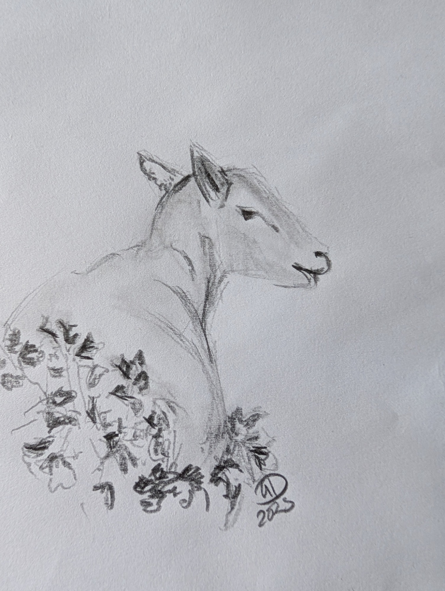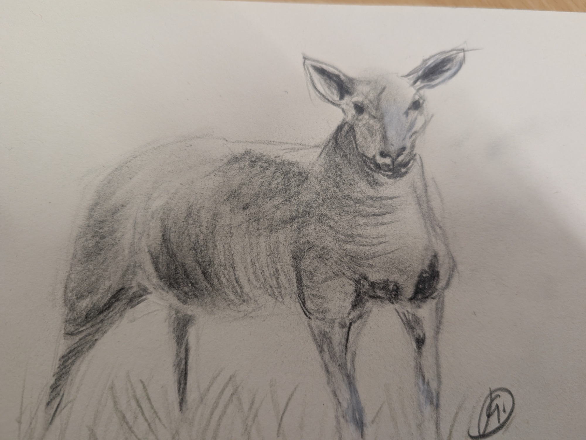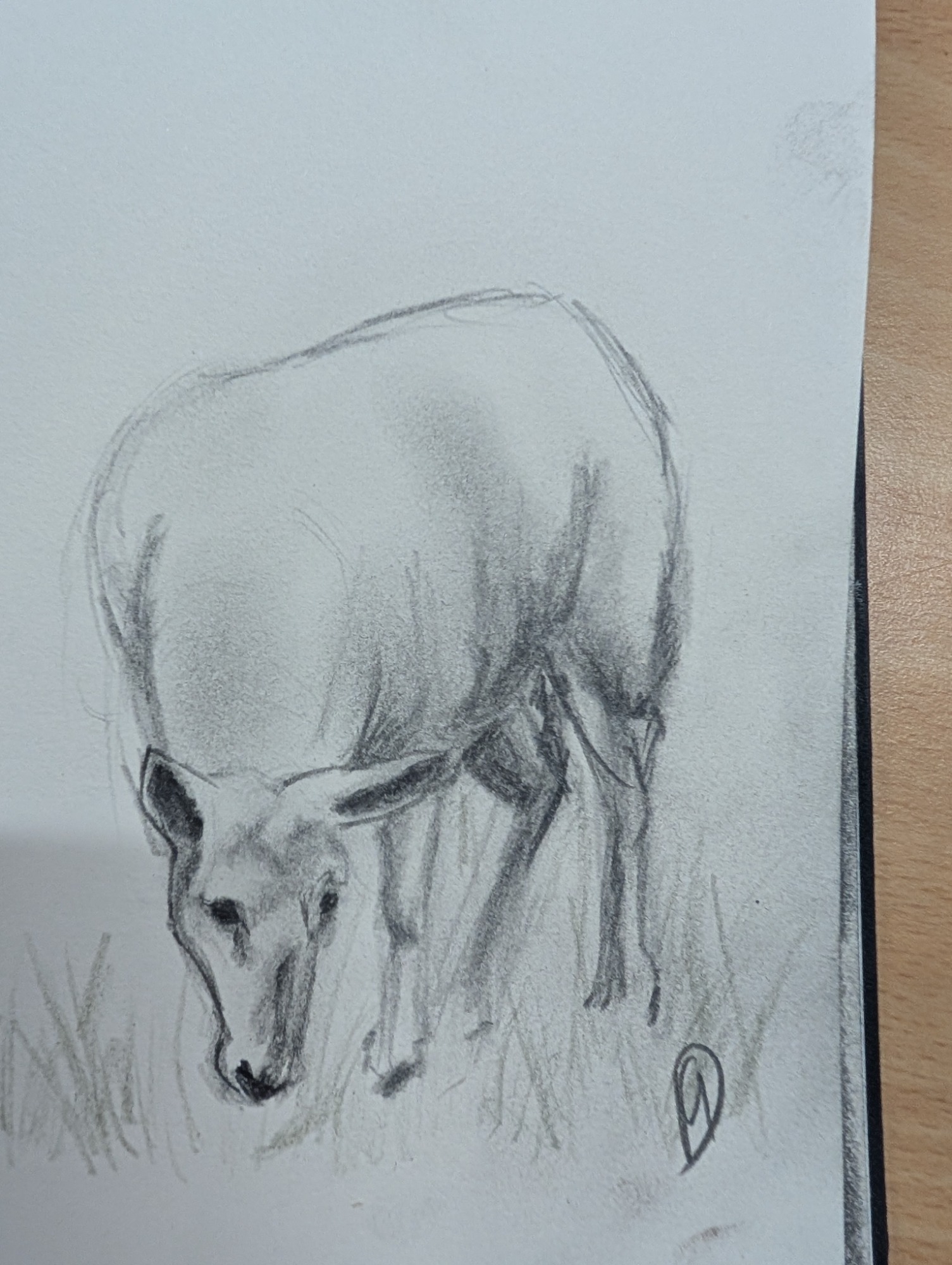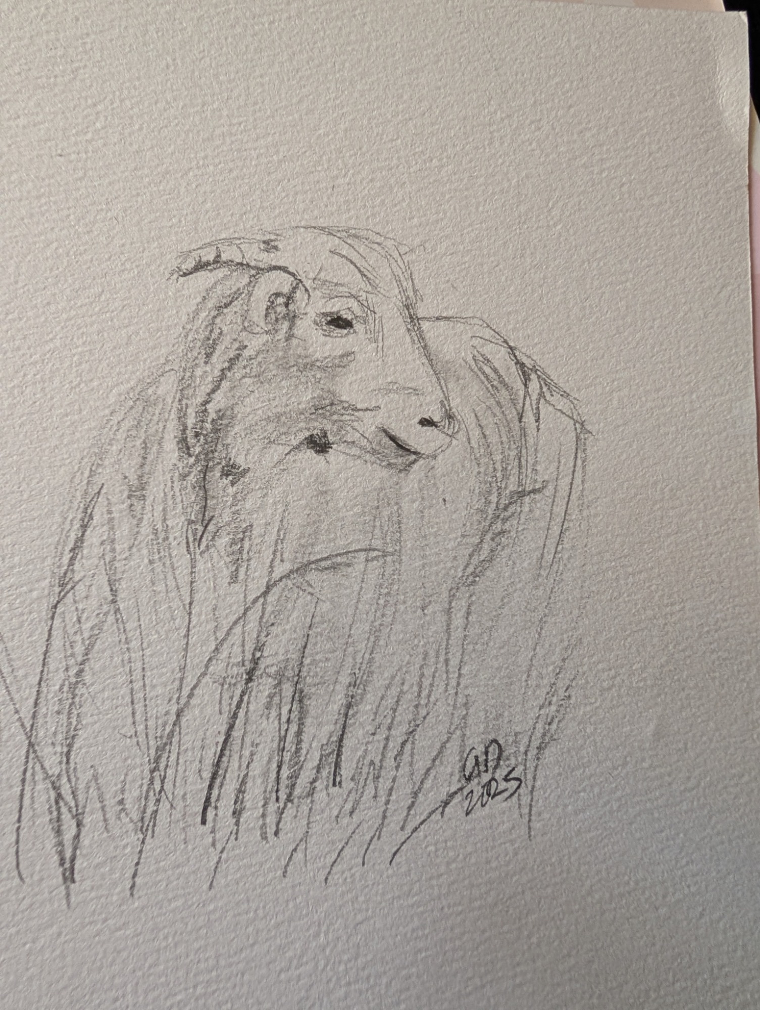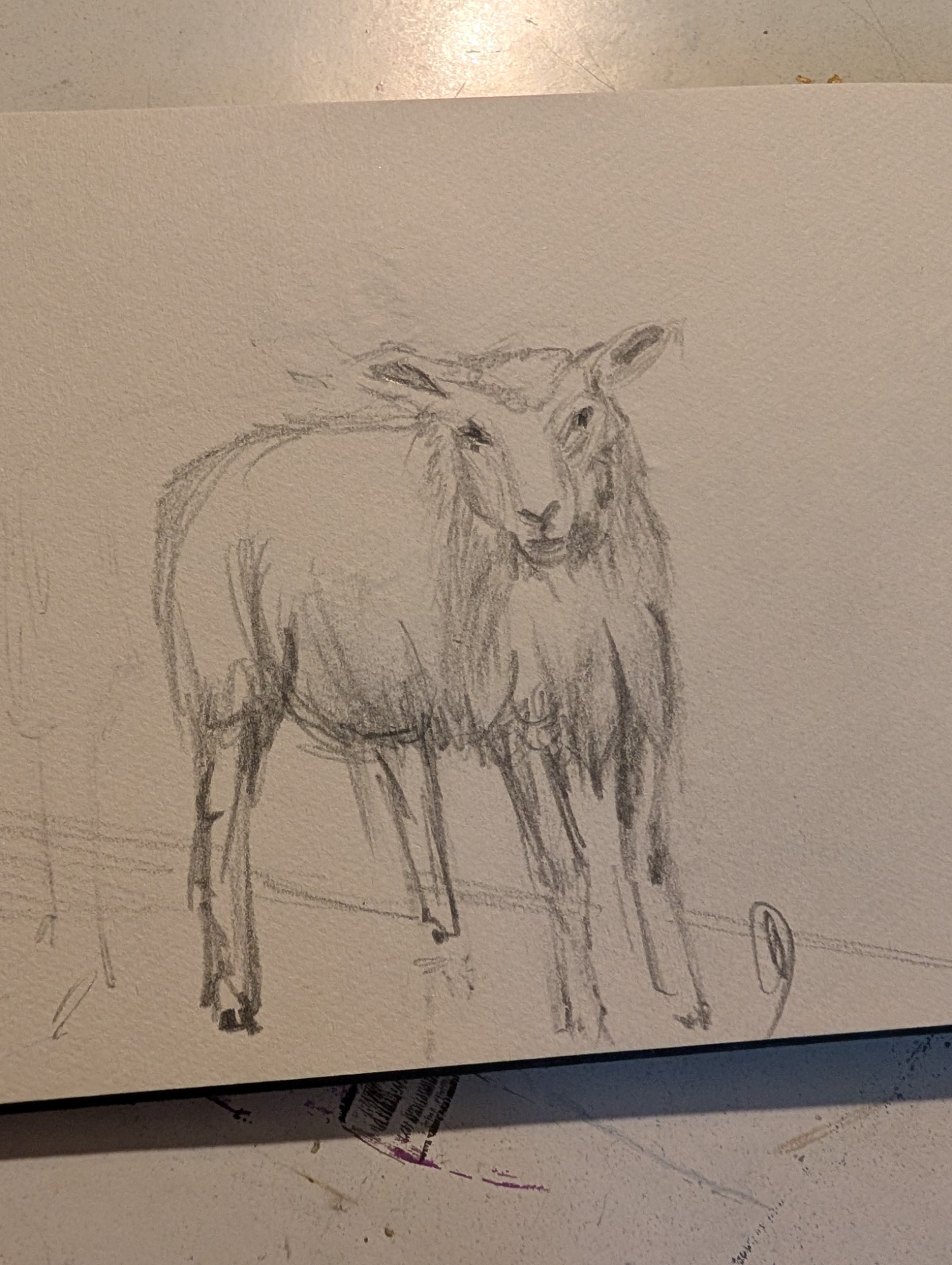 This poor sheep got the pleasure of being the first thing I sketched in my new varifocals .. better him than Dixie, but they seem to be working ok so far.