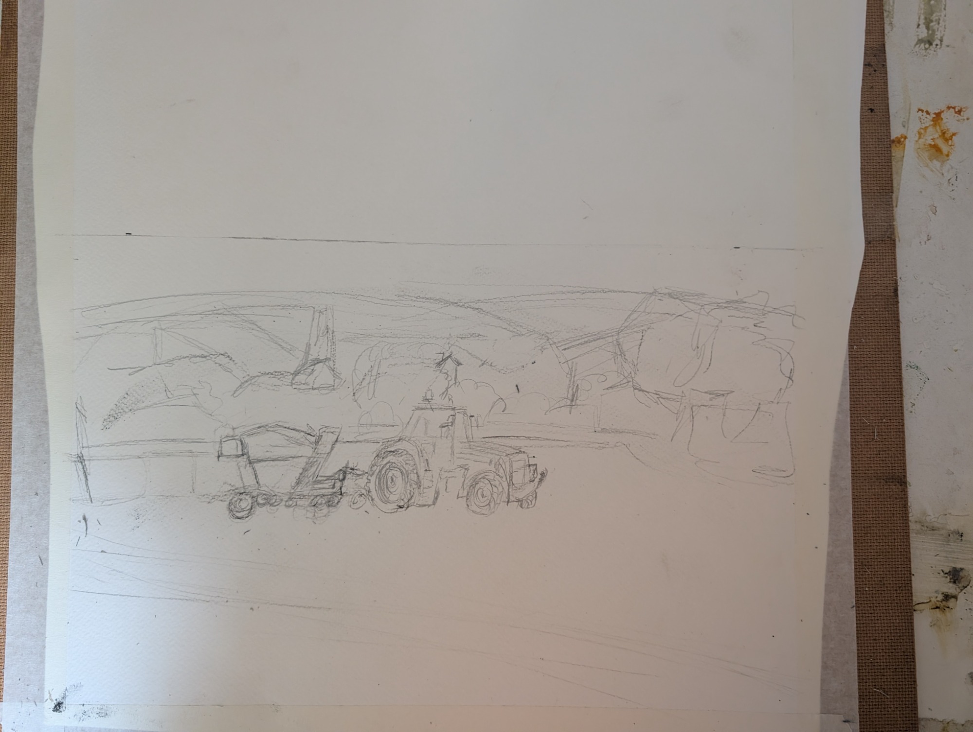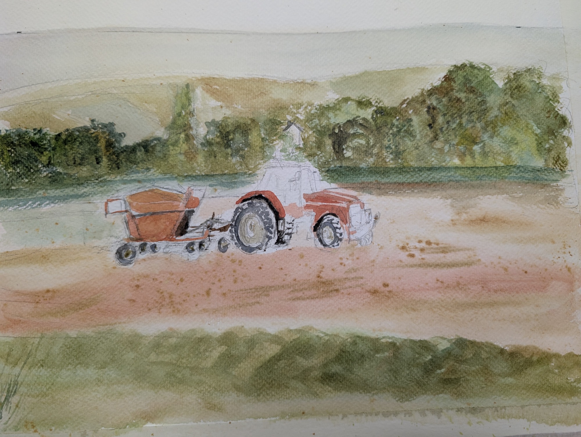 Had some fun experimenting with gum Arabic on the tractor and playing with my new extremely long natural sword brush