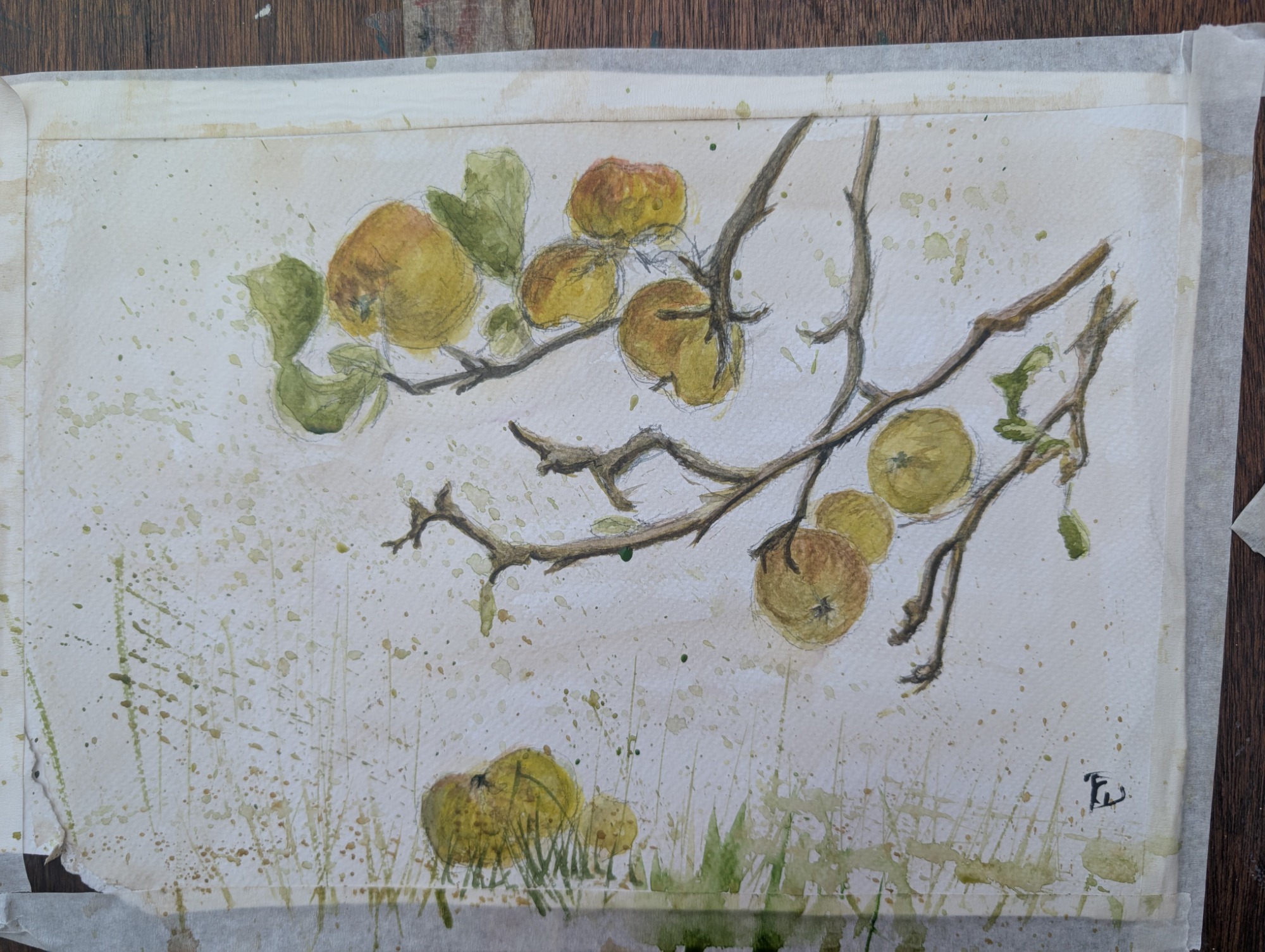 This sketch has been hanging around since October, whilst I considered the idea of painting it, but the time was right and the outcome was pleasing on wednesday